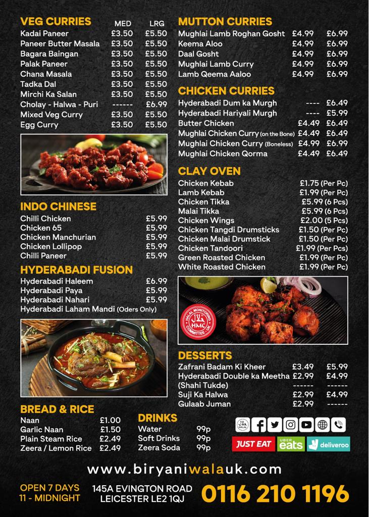 Whether you’re in the mood for a hearty curry, a flavorful kebab, or a tasty vegetarian dish, Biryaniwala’s menu provides something for everyone, making it a must-visit for anyone in Leicester craving authentic Indian cuisine.