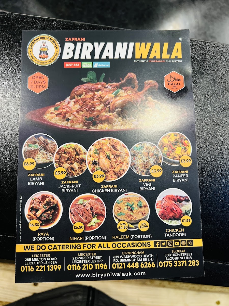 Biryaniwala Leicester, located on Evington Road, offers a diverse and flavorful menu that caters to a variety of tastes, making it a top destination for Indian cuisine lovers. Their Mutton Curries range from Keema Aloo and Mughlai Lamb Roghan Gosht to Daal Gosht Mughlai Lamb Curry and Lamb Qeema Aloo, each providing rich, aromatic flavors that are sure to satisfy meat lovers. For those seeking a more unique experience, the Hyderabadi Fusion section is a must-try, with dishes like Hyderabadi Haleem, Hyderabadi Paya, and Hyderabadi Nahari bringing a taste of traditional Hyderabad right to Leicester. You can also indulge in the delicious Hyderabadi Laham Mandi, which combines tender lamb and fragrant spices.